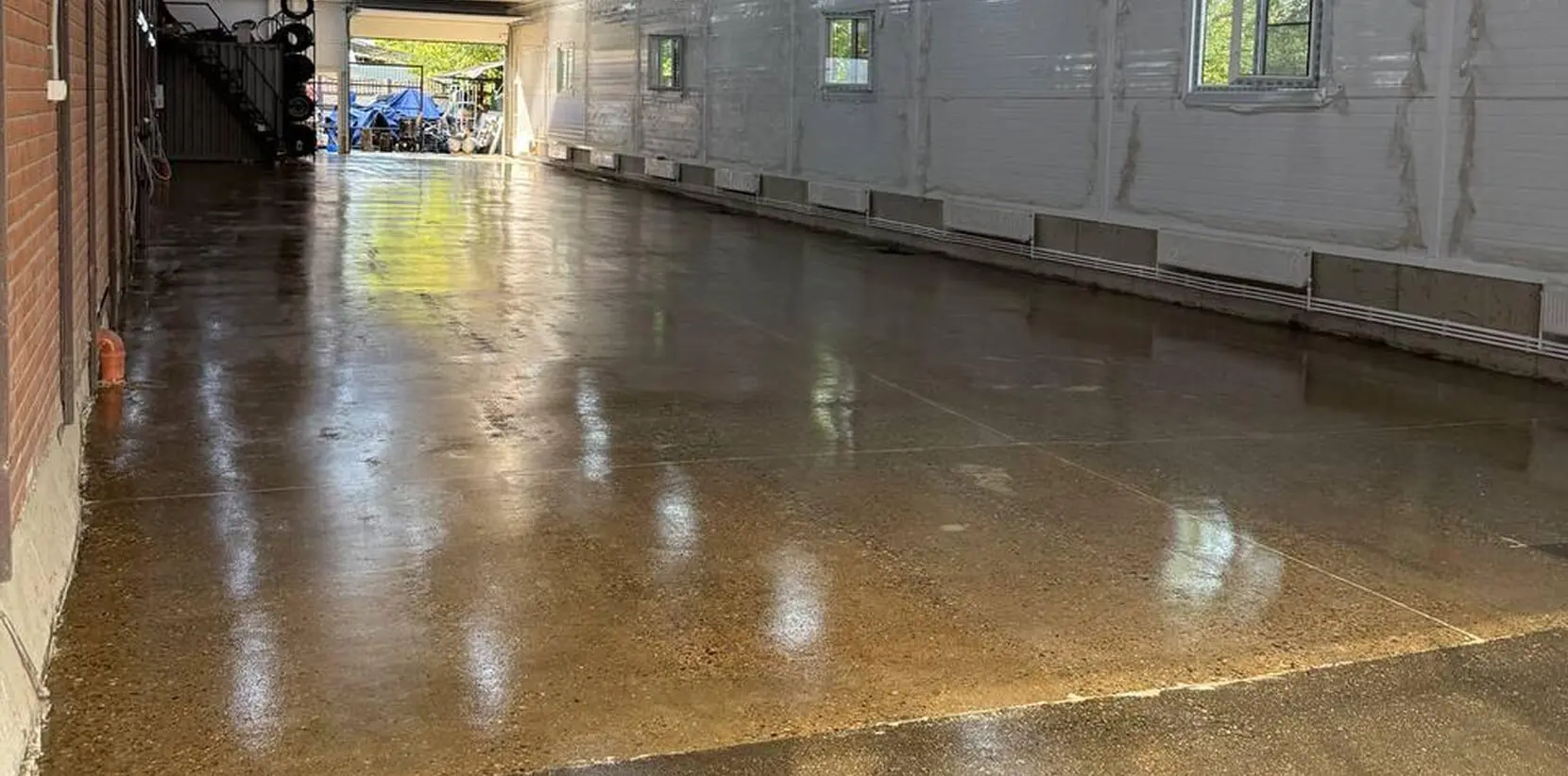 Пол получился ровный, не пылит, не скользит — помещение открыл в срок, без потери рабочих дней.